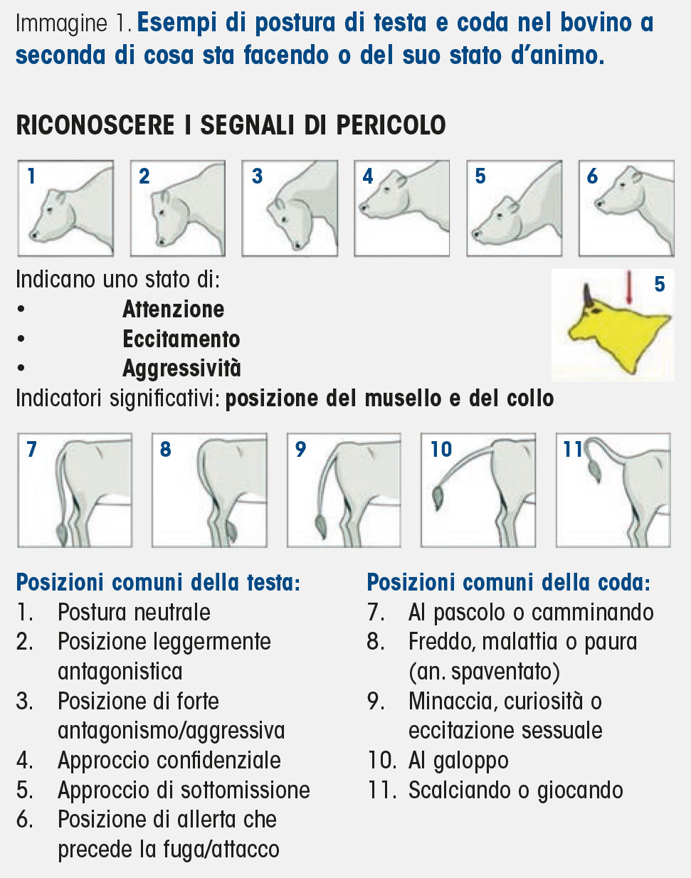 Date le caratteristiche dell’occhio e la sua capacità visiva, il bovino è un animale che ha la necessità di vedere chiaramente dove appoggia gli unghioni; pertanto, la sua andatura normale è a testa bassa. State sempre molto attenti se in un gruppo in movimento osservate animali che alzano e mantengono la testa alta, questa deve essere immediatamente interpretata come una manifestazione di stress.